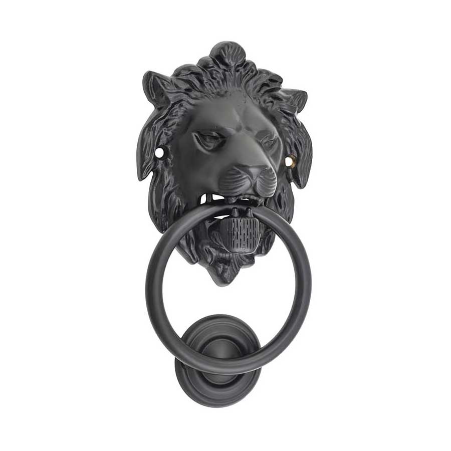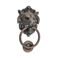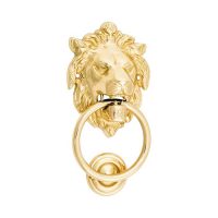 Lions head door knocker. Available in solid brass or iron.